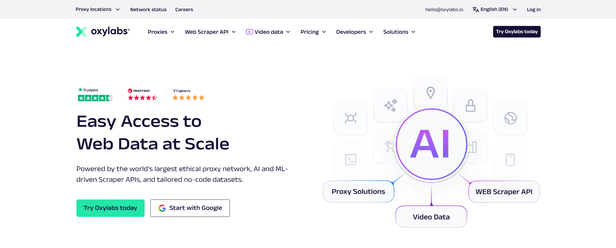 Oxylabs offers a Google SERP API as part of its larger suite of data extraction tools. You can test requests in the API Playground, and integration into your own application is straightforward once credentials are set up.