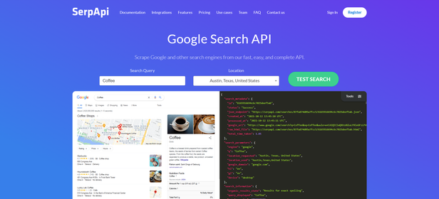 The API returns structured JSON, and support for rich SERP features like featured snippets and ads is solid. However, raw HTML is not included, and image data is returned as base64, which makes it less suitable for workflows involving LLMs.