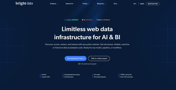 HasData is one of the best web scraping APIs, featuring AI-powered tools to parse and structure data. It turns messy web pages into clean, predictable JSON. This smart extraction technology is designed to scale from pilot projects to large, ongoing data pipelines. For comparison, Bright Data provides granular proxy control for complex use cases.