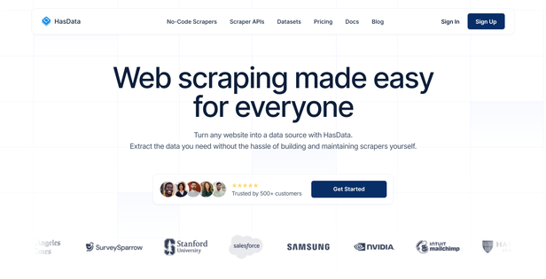 HasData provides a web scraping API focused on delivering pre-parsed, structured data. It leverages AI-powered tools to transform raw HTML into clean, predictable JSON, aiming to eliminate the need for manual parsing. The API supports rich customization via parameters for extraction rules, JS scenarios, and CSS selectors, and it provides both Python and Node.js SDKs. Responses include full metadata, request IDs, and optional screenshots.