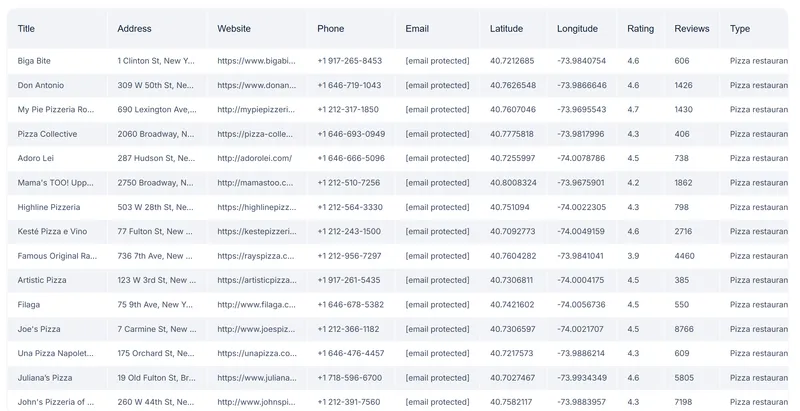 | Good for common patterns (directories, Maps) | May struggle with anti-bot defenses | |